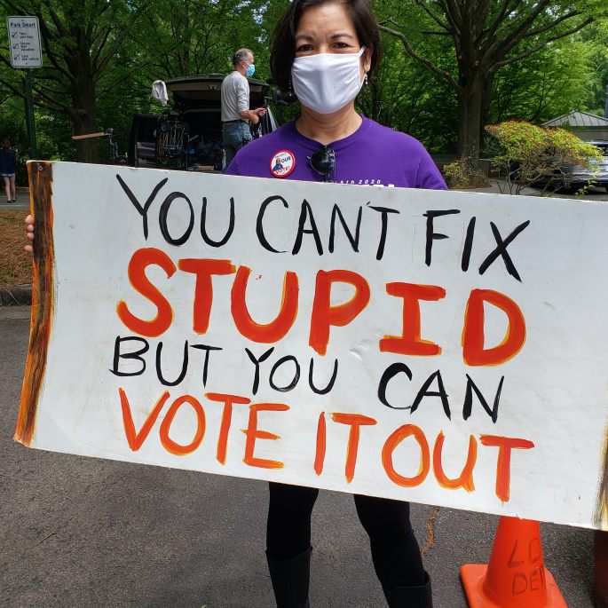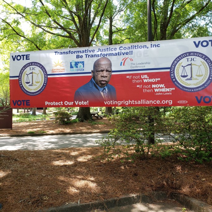Saturday, May 8, 2021, was the “John Lewis National Day of Action ” to restore the Voting Rights Act. People in 20 cities in Georgia and 200 cities around the country took to the streets in “Votercades” to mobilize passage of HR1 For the People Act and HR 4 the John Lewis Voting Rights Advancement Act, and HR 51 for DC statehood and to address the racist Jim Crow era filibuster.