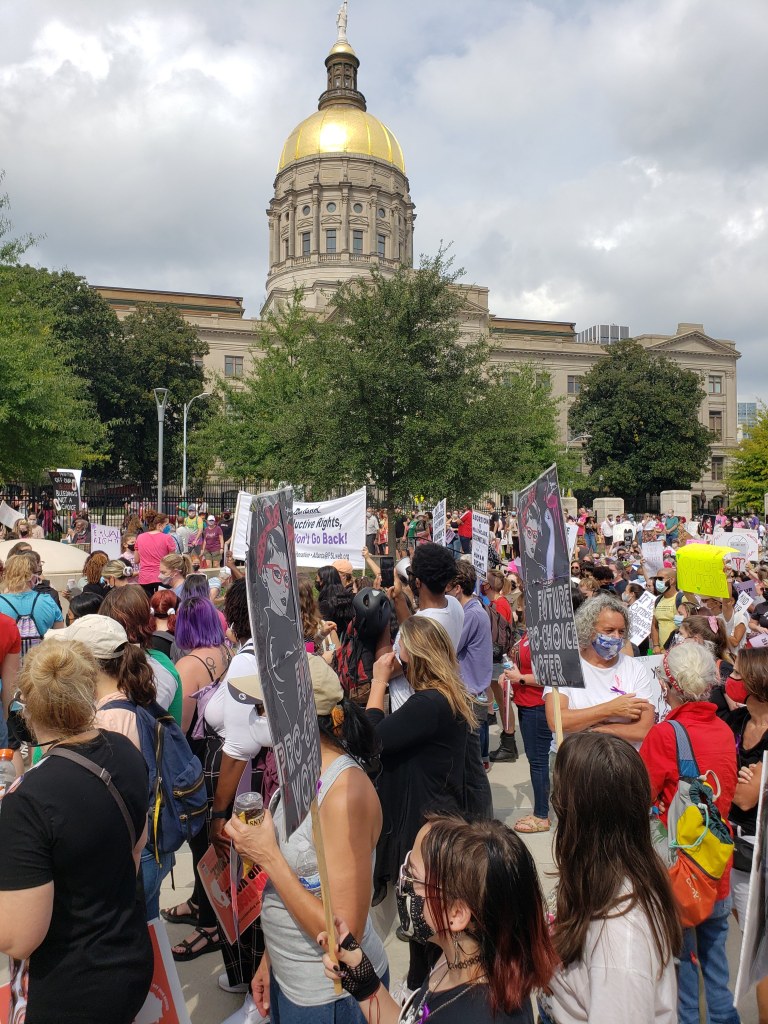 Today, October 2, 2021, the resistance began with over 600 marches, millions of women, men, and children in cities all across the United States demanding reproductive rights. In Atlanta, thousands of women gathered at Liberty Plaza across from the state capitol.