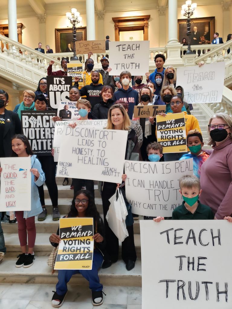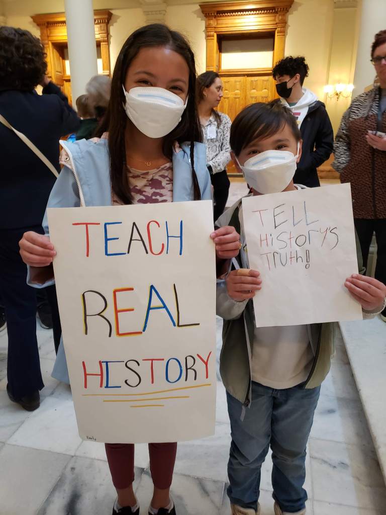 Teachers, parents, and students (K through 8th grade) came to the Georgia State Capitol to tell lawmakers they can handle the truth about racial history. They don’t need bills to censor racial history under the lame excuse of protecting white children from feeling bad by learning the truth about slavery, and racial history in the United States.
