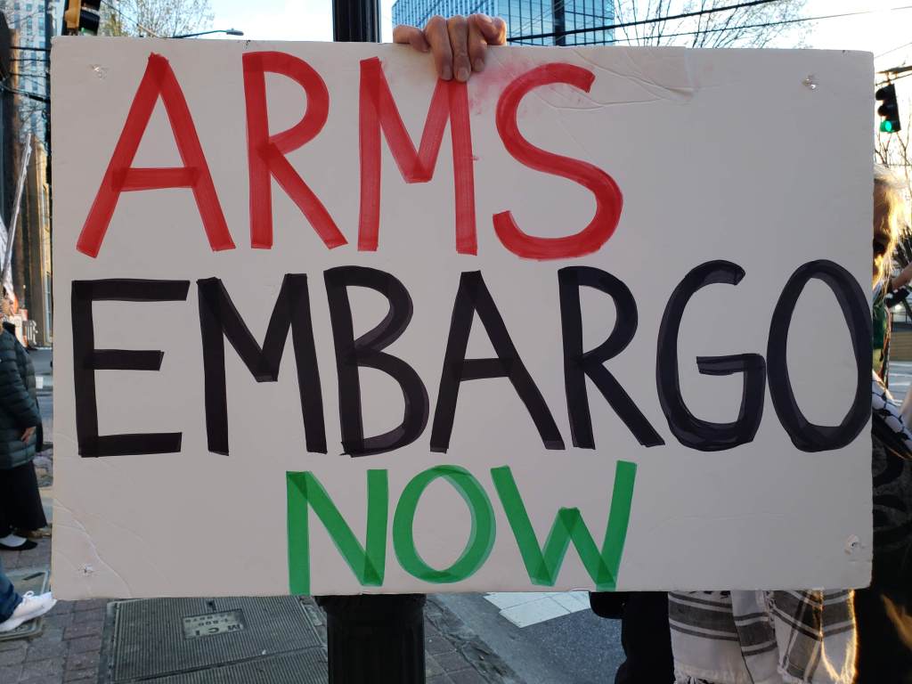 Students call for an arms embargo against weapon manufacturers and cargo companies. We must put pressure on companies that supply weapons to Israel.