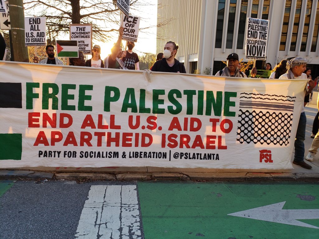 The Party for Socialism and Liberation Atlanta called an emergency protest in front of the Israeli Consulate on Tuesday night, March 18, because over 400 Palestinians were killed today by Israel. Protests were held all over the U.S. and the world in opposition to the destruction of Gaza and the ongoing genocide and starvation of the Palestinian people.
