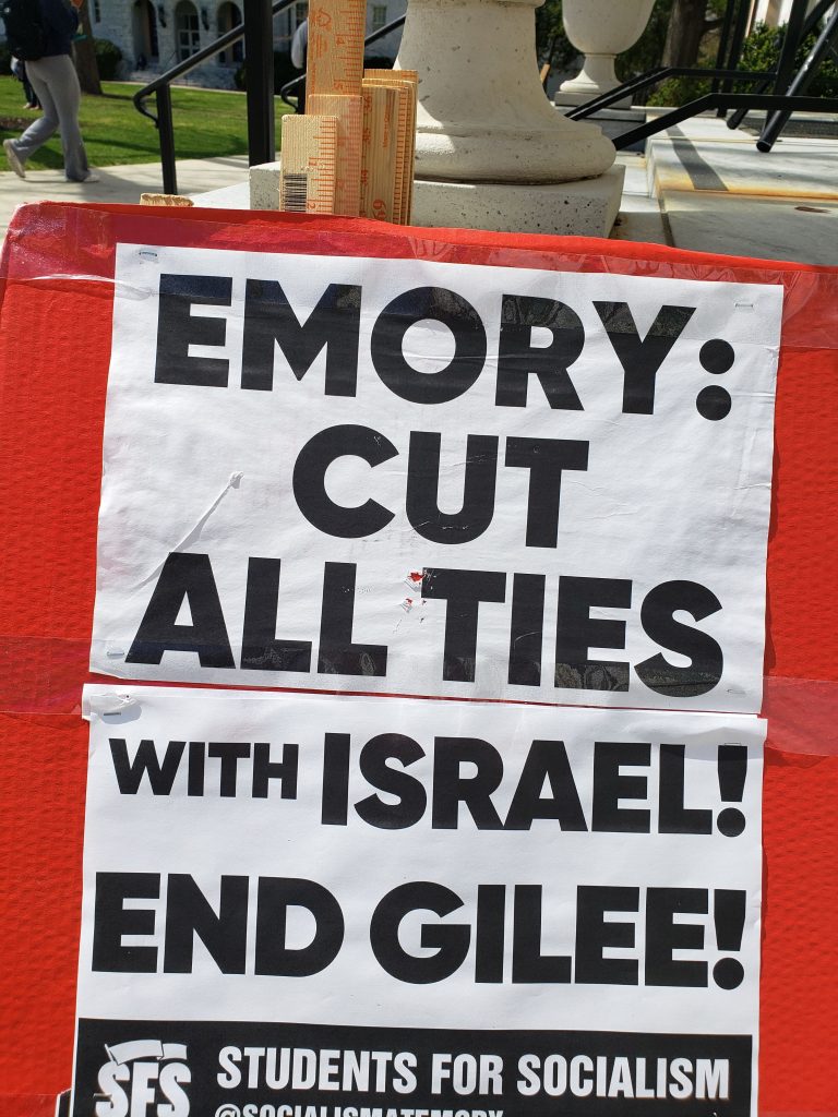 “The United States supports Zionist Israel because it is its operating base for American imperialism in the Middle East. While Palestinians are being slaughtered, the ruling class and their lobbyists line the pockets of democratically elected politicians who are getting wealthy from the genocide in Gaza. Our Board of Trustees, hand in hand with the military-industrial complex, has their pockets lined by the genocide in Gaza,” an Emory student who wishes to remain anonymous due to retribution from the administration for telling the truth.” An Emory student with the Emory Revolutionary Students Collective said.